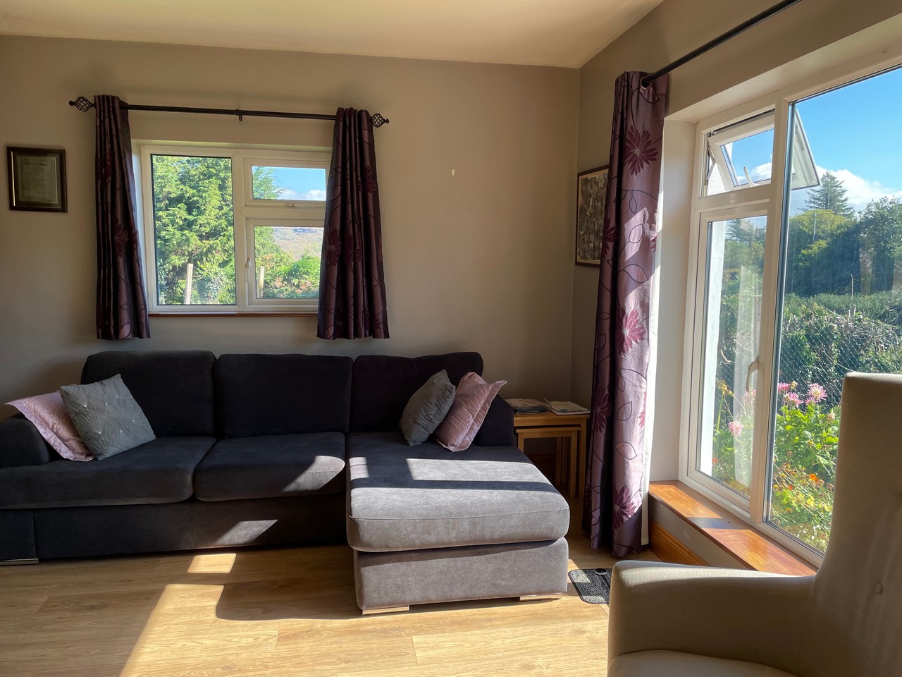 A wonderful 4 bedroomed bungalow with beautiful matured gardens all on 0.52 Hectares/1.28 acres. Located on the Wild Atlantic Way /Ring of Kerry route, Tahilla harbour is less than 2 minutes drive away for boating and swimming. The Parknasilla Golf Course is less than five minutes away, Sneem village is less than 7 KM with its lovely Cafes, restaurants, bars, Sneem Hotel, local Primary School at Tahilla less than 5 min. drive and there is a another primary school in Sneem village, the secondary school which would be based in Kenmare town which is 13KM there is a school bus passing the property along with the local link bus which travels to Kenmare and onto Waterville and other routes.