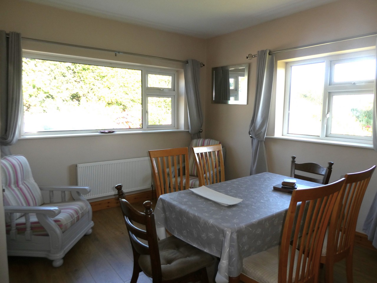 On entrance to the house there is lovely colourful garden with numerous flowers of Dailies, lavender, roses, to name a few the garden is spacious, seating, a fire pit, lots parking space, storage sheds and boiler house. A new oil boiler is currently being installed. The walls of the house were pumped 2 years ago and extra insulation put in the attic. Behind the property is a large field which can be accessed from the house and it also has a separate entrance from the access road. The field would be ideal for small farm animals, chickens, a vegetable garden with polytunnels it could have many uses. Inside the property has 4 bedrooms, one ensuite and a main bathroom, kitchen is practical and modern with its centre island, double glass doors lead into the dining room and there is a separate sitting room to front of the house.
